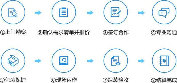 在企事业单位办公室搬迁重置服务领域,积累了丰富的经验,公司不断优化搬迁方案,由此总结了一套经典的服务流程: